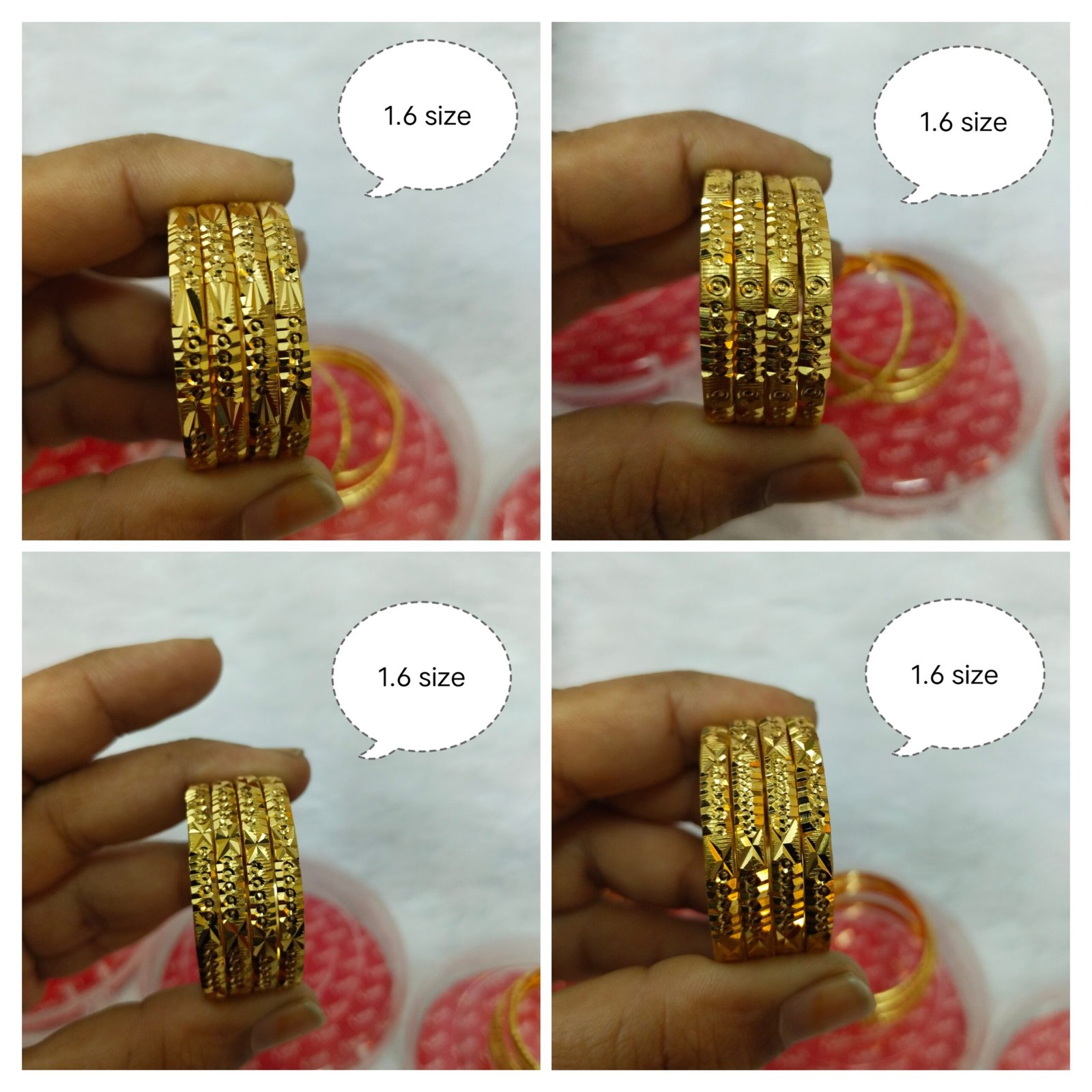 Be the first to review “Gold plated Traditional Bangles (set of 4) – Size 1.6 Price Rs.110/- only” Cancel reply